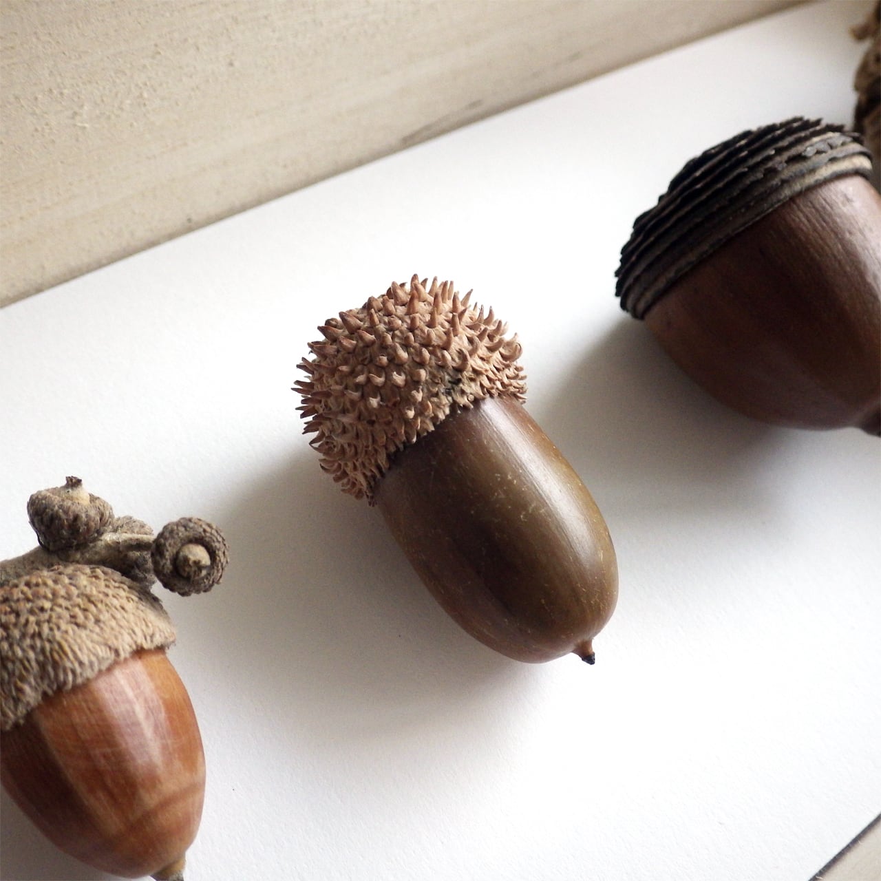 ドングリは身近な木の実だと思われがちですが、その多様性や特長など、人間や動物との関わりも深く、話題にも事欠きません。また同じ種でも、個体差や亜種変種が多いこともドングリの面白いところです。自然の創り出す造形美とドングリのもつ独特の可愛らしさがとても美しいです。色や形、同じものは二つと存在しない世界に一つのインテリアとしても楽しんでもらいたいです。